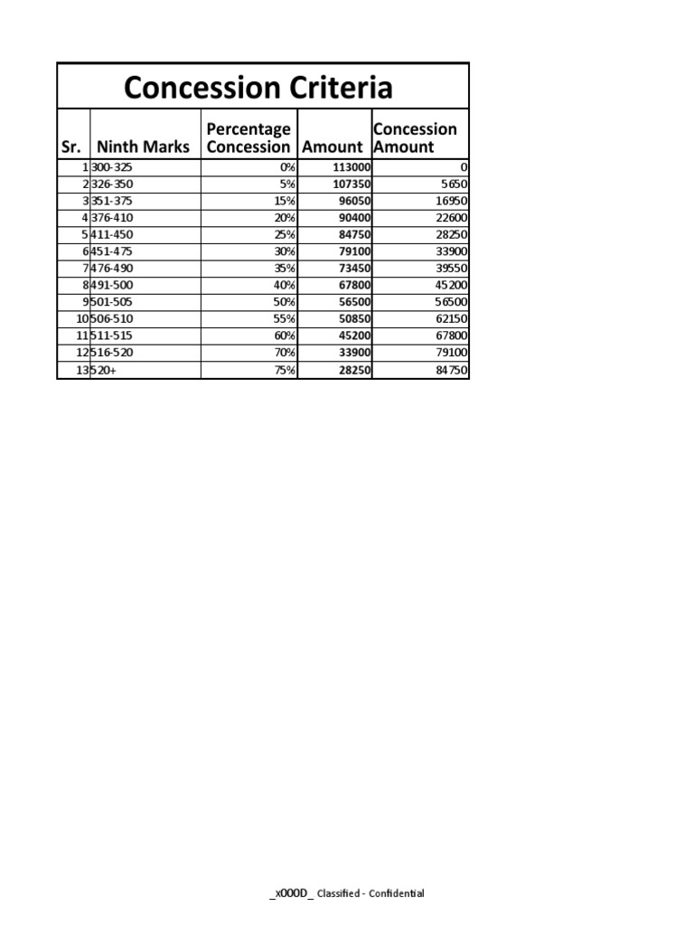 Concession Criteria Sr. Ninth Marks Amount Percentage Concession